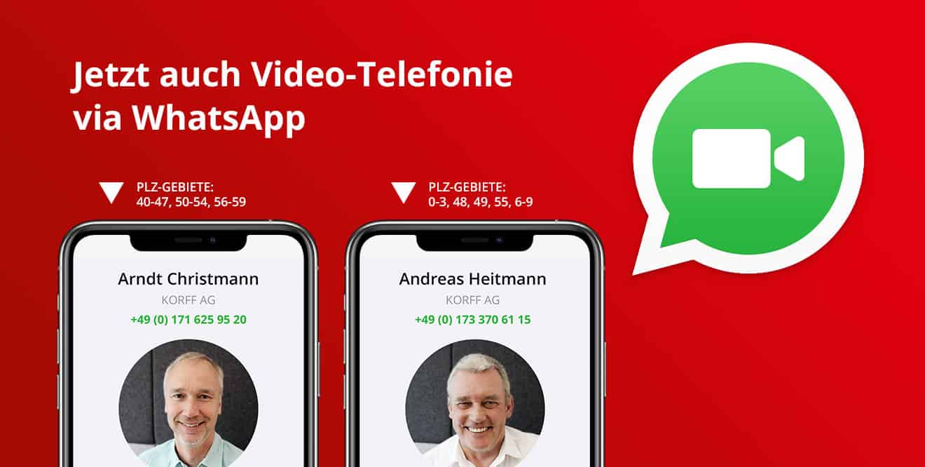 Damit wir weiterhin flexibel reagieren können, haben wir unseren kontaktlosen Service für Sie ausgebaut. Denn uns ist es sehr wichtig, nach wie vor für Kunden als auch Verarbeiter da zu sein. Daher beraten wir Sie seit neuestem auch kostenlos via WhatsApp-Videochat – vollkommen kontaktlos. Bei der Korff AG werden zurzeit alle persönlichen Kontakte auf ein Minimum reduziert, um das Infektionsrisiko mit dem Covid19-Virus möglichst klein zuhalten und so Ansteckungen zu verhindern.